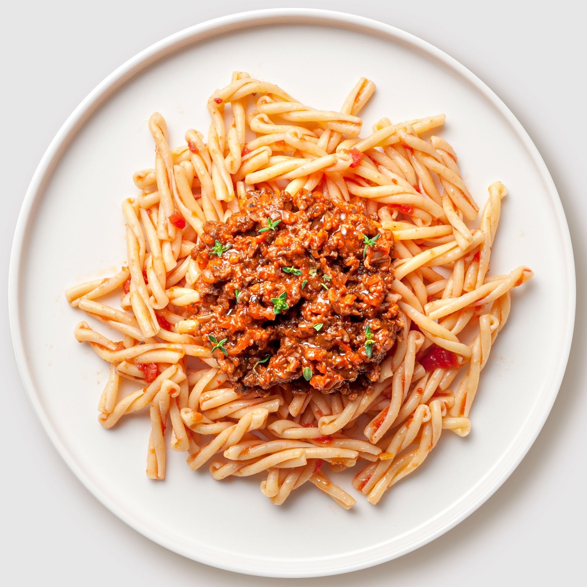 Ζυμαρικά fusilli bucati corti δένουν ιδανικά με μια πλούσια σάλτσα bolognese που σιγομαγειρεύεται για να αναπτύξει βάθος και ισορροπία. Ο κιμάς σοτάρεται σωστά και ενώνεται με ντομάτα, αρωματικά λαχανικά και διακριτικά μπαχαρικά, δημιουργώντας μια γεμάτη, καθαρή γεύση. Η ελικοειδής μορφή των ζυμαρικών κρατά τη σάλτσα σε κάθε μπουκιά, προσφέροντας πλούσια υφή και απόλαυση. Ένα all time classic πιάτο, μαγειρεμένο με προσοχή στη λεπτομέρεια και έμφαση στην ουσία.